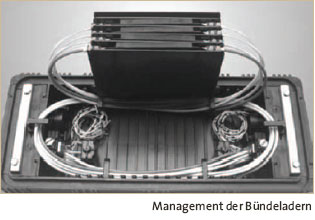 Kabelabfangung und Raum zum Ablegen der Bündeladerüberlängen.