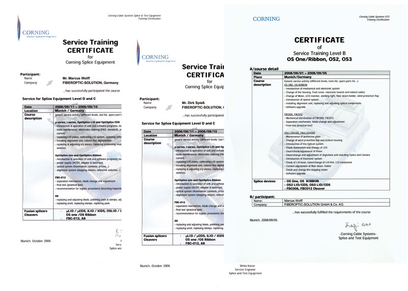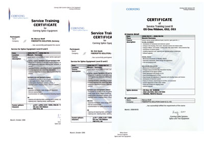 CORNING CABLE SYSTEMS ausgebildet und wir sind zertifizierter Level:
